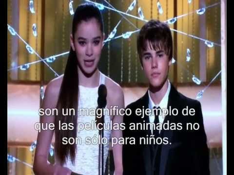Justin Bieber estuvo el pasado 16/1/2011 en la ceremonia de los Globos de Oro, presentando la categoría "Mejor película animada" junto a la desconocida actriz Hailee Steinfeld (de la película True grit) la cual acaparó el escenario y prácticamente no dejaba que Justin hablara. La película animada ganadora de esta categoría fue la taquillera "Toy Story 3".